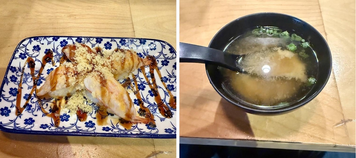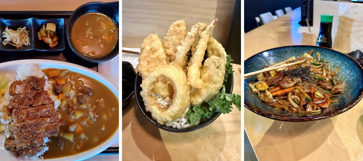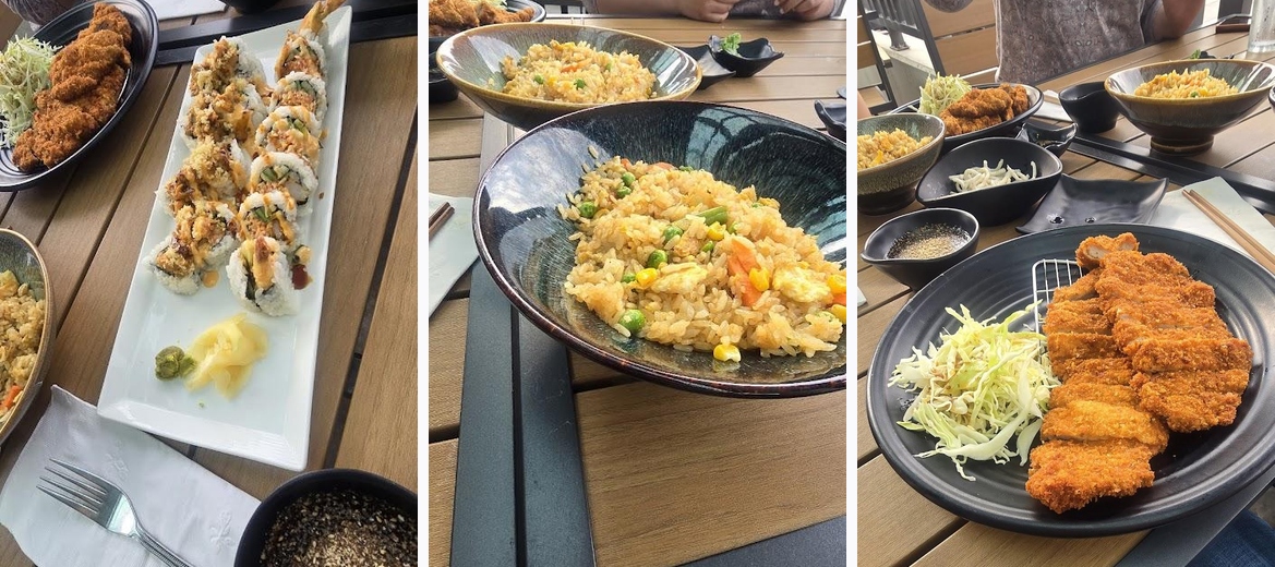 The food was good. I ordered three Katsu pork, and it was made crispy and nice. The sushi was delicious. Good location